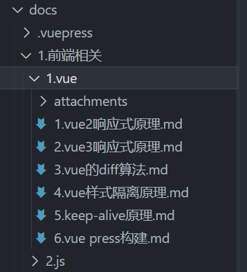 前端相关和js作为一级分类的文件夹,里面再有分类就用文件夹,然后attachments存放图片和pdf等附件
